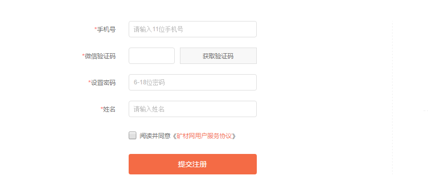 1、輸入您的手機號碼,用于礦材交易時聯系