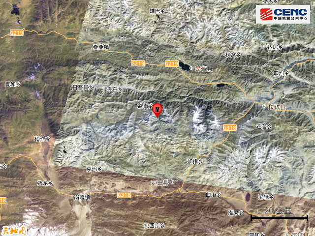 震中地形:震中5公里范圍內(nèi)平均海拔約4985米。