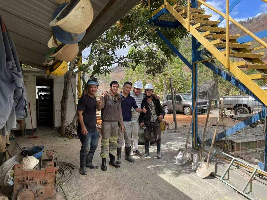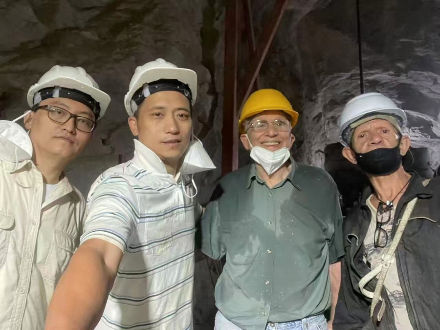 顧宙知(左二)與老礦主若埃爾(左三)在礦中合影。